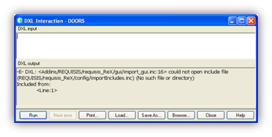 Since the paths for Addin/Projectaddins are not set via the registry/command line additions, but via the central DXL security settings in DOORS, Requisis-ReX must be installed according to these settings and if necessary the include paths must be adjusted.